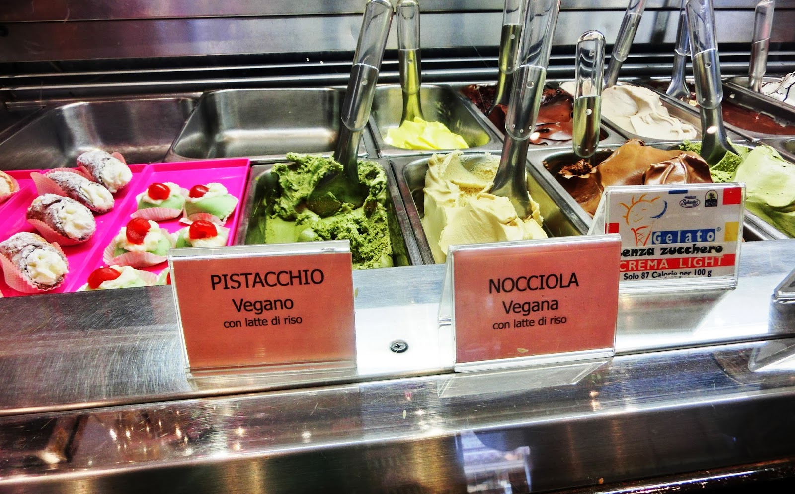 Veganes Eis mit Reismilch! Das war wirklich witzig. Wir liefen durch die Stadt und ich bekam Appetit auf cremiges, veganes Eis und sagte das auch. Wir schauen über die Straße und sahen genau in dem Moment DIESES Schild an einem Laden hängen! So ein Zufall!