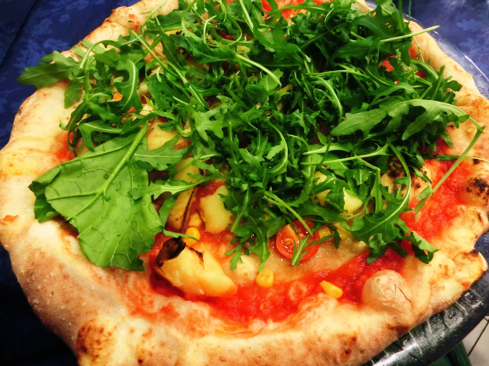 Am letzten Abend waren wir Pizza essen. Lecker, frisch, hauchdünn und gut belegt. Meine war mit Rucola, Kartoffeln, Mais, Tomaten und Artischocken. Ich bekomme Huuuuuunger!